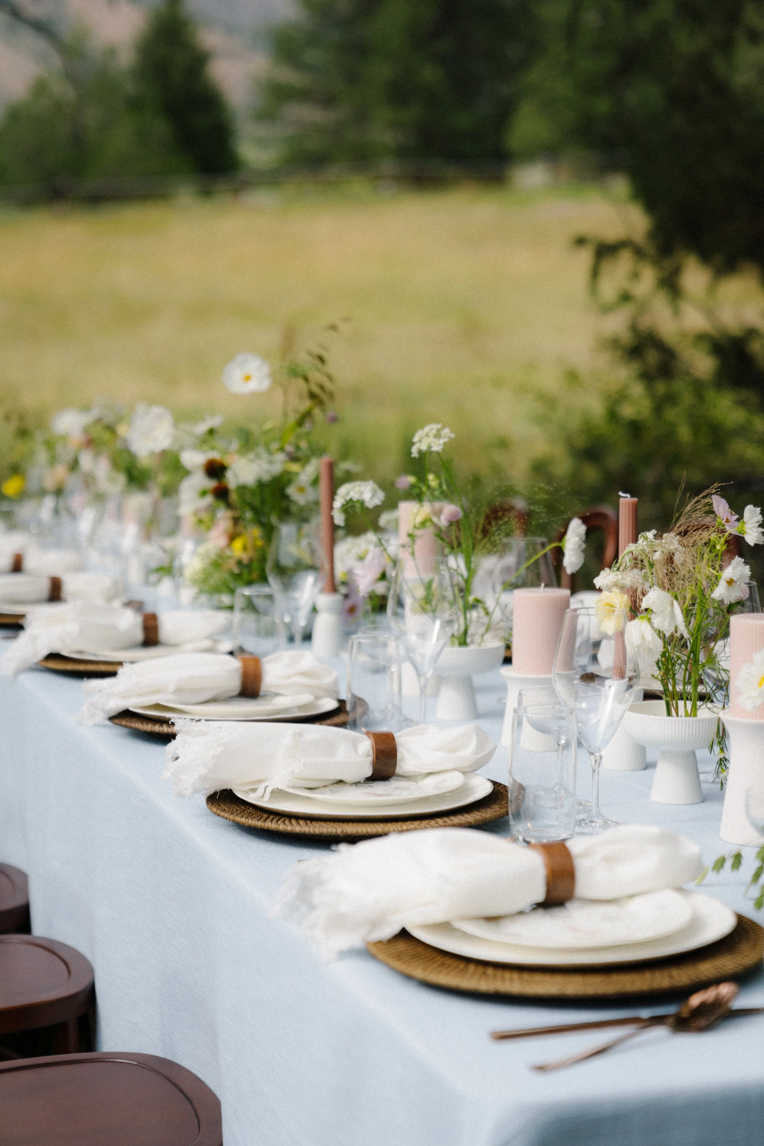There is no standard linen size that fits the 5x10 Serpentine Tables perfectly, but you can use either a 132”x90” linen for a mostly full drop, or a 156”x90” linen for a puddle full drop. We personally prefer the look of the 132”x90” linen, especially when the tables are going to be used on outdoor terrain.